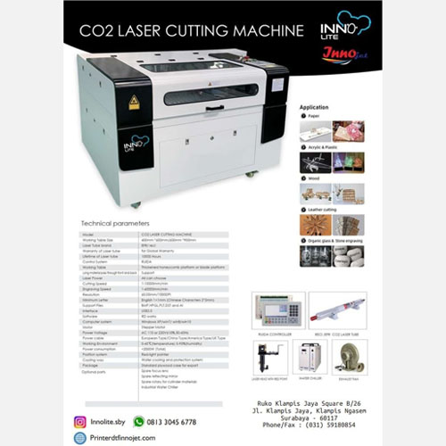 Note : Mesin ini digunakan untuk memotong bahan Acrylic, Fiberglass, Card Board, Wood, Leather, Organic Glass